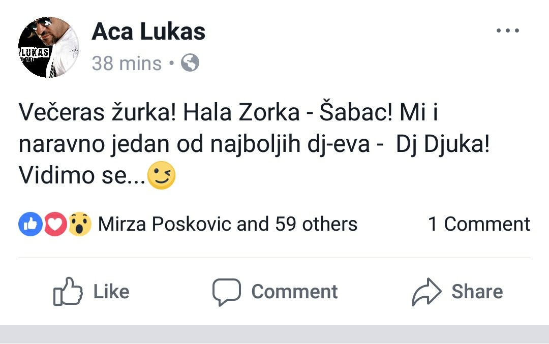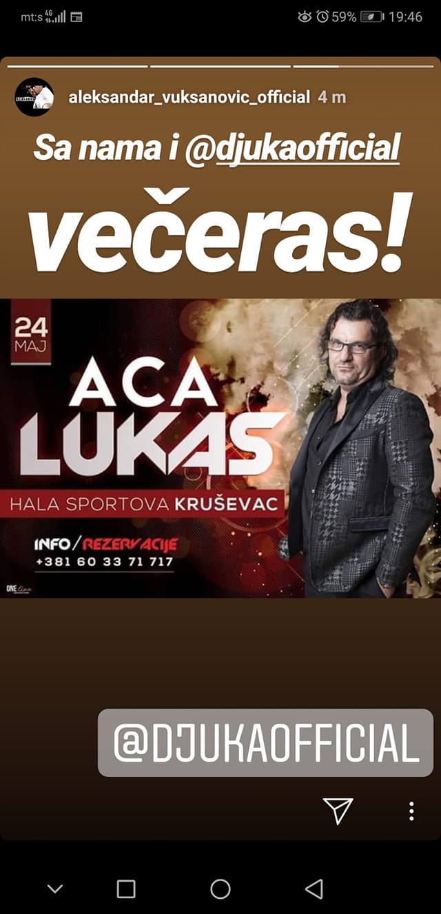 DJ Djuka je nastupao u Zenici kao predgrupa Ace Lukasa, zagrevajući publiku svojim energičnim setom pre velikog koncerta.
